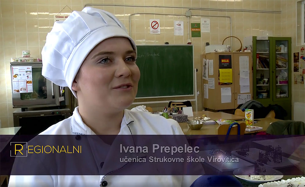 Ivana Prepelec, maturantica Strukovne škole Virovitica, pamtit će Osijek gdje je 16. veljače održano regionalno natjecanje učenika ugostiteljskih usmjerenja „GASTRO 2018.“ . Naime, tamo je Ivana Prepelec, učenica 3g razreda, smjer slastičar, pod vodstvom mentorice Melite Balenović osvojila 1. mjesto u disciplini Pripremanje slatkog izloška na tanjuru i time se plasirala na državno natjecanje koje će se održati od 19. do 22. ožujka 2018. u Malom Lošinju. (www.vpz.hr, Plava televizija)