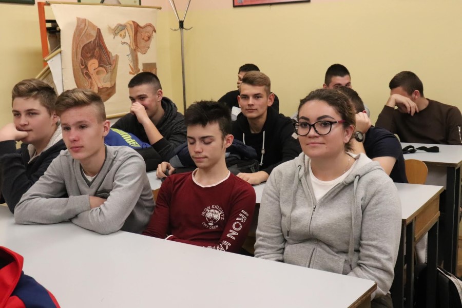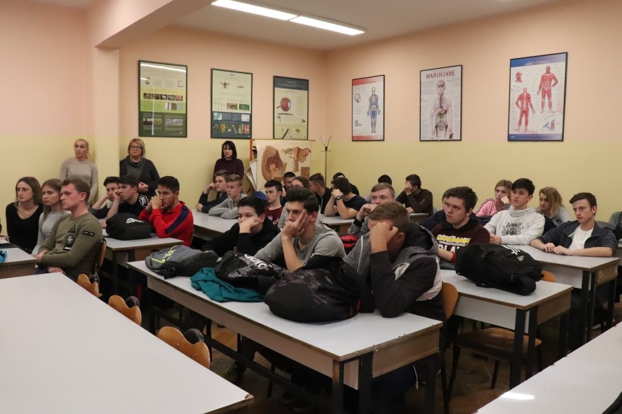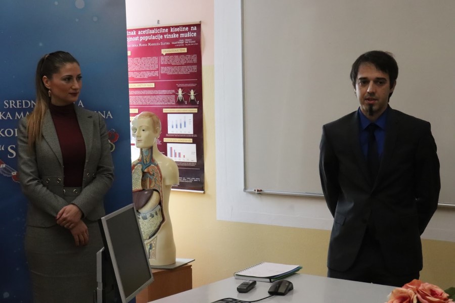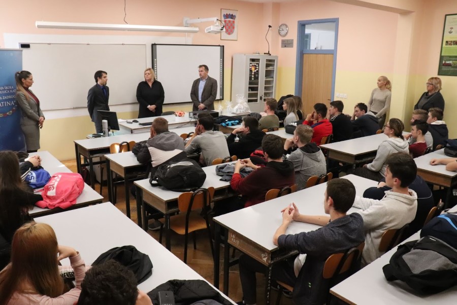 Srednju školu Marka Marulića Slatina posjetili su predstavnici Hrvatske udruge poslodavaca, pravna savjetnica Vedrana Gado i član Izvršnog odbora HUP-a Udruge prehrambene industrije i poljoprivrede, ujedno vlasnik i direktor ”Protect Pharme” Mladen Falamić.