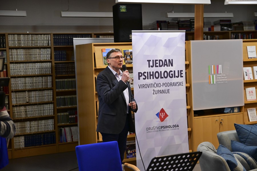 - Moto ovogodišnjeg obilježavanja Tjedna psihologije nam poručuje da trebamo čuvati naše mentalno zdravlje i zaista je psihologija ta, i kao znanstvena disciplina ali i kao ta koja zapravo ima vještine i kompetencije, da nam olakša svakodnevni život. Psihologija je ta u koju u ovoj vrijeme trebamo vjerovati, ne samo zbog epidemije i potresa, već i zbog informacijskog društva koje traje već dosta godina koje mi knjižničari velikodušno zagovaramo, a ono ima zapravo i dosta svojih mana. Veliko zadovoljstvo mi je pozdraviti profesoricu Dubravku Miljković, koja je zajedno sa svojom kolegicom Majdom Rijavec u našem narodnom knjižničarstvu sinonim za popularnu psihologiju i čije knjige naši korisnici vjerno očekuju i zaista rado čitaju – zaključio je Robert Fritz te riječ predao predsjednici Društva psihologa Virovitičko-podravske županije Jasni Per Kožnjak, koja je zahvalila svojim sugrađanima na dolasku te istaknula da se Tjedni psihologije pripremaju upravo zbog njih, nakon čega je pozvala gradonačelnika Virovitice Ivicu Kirina da svečano otvori 15. tjedan psihologije.