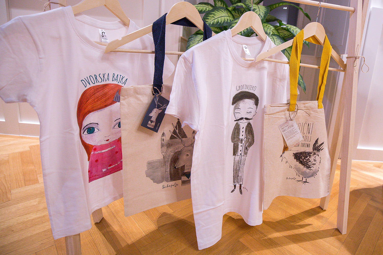 - Nastali su spontano. Ova naša mala zajednica, tu u Dvorcu Janković u Suhopolju, nudi najbolje što imamo s našeg područja. Tu su prvoklasne slastice, vina, likeri, domaća piva, čajevi, ginevi, sve što raste u Virovitičko-podravskoj županiji, a sada je došao i Grofinjero. Grofinjero priča priču o Suhopolju, obitelji Janković, Suhopoljskom dvorcu. Jelen je ovdje jer je u Suhopolju nekad bilo omiljeno svratište kod Zlatnog jelena, a jedna ilustracija predstavlja domaćeg pijetla. Sve te ilustracije implementirali smo na majice i platnene vrećice, tzv. cekere, pa ih možete nositi na sebi ili sa sobom. I ovime želimo obogatiti našu ponudu, posebno jer bilježimo velik broj i posjeta i noćenja i rezervacija, pa nas veseli buduće razdoblje, kada ćemo „pandemijske vijesti“ ostaviti iza sebe – kazala nam je direktorica Dvorca Janković u Suhopolju Sanja Sudar.