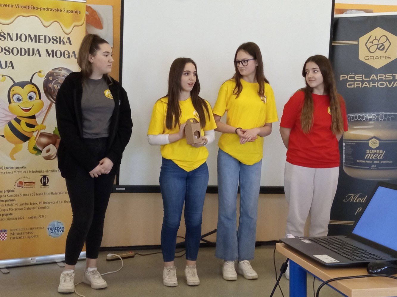 Prvu radionicu i predavanje na temu “Pčele i med” učenicima OŠ Ivane Brlić-Mažuranić, Industrijsko-obrtničke škole Slatina i Strukovne škole Virovitica održali su pridruženi partneri projekta Katarina i Dario Grahovac iz OPG „Grapis Pčelarstvo Grahovac“ iz Virovitice.