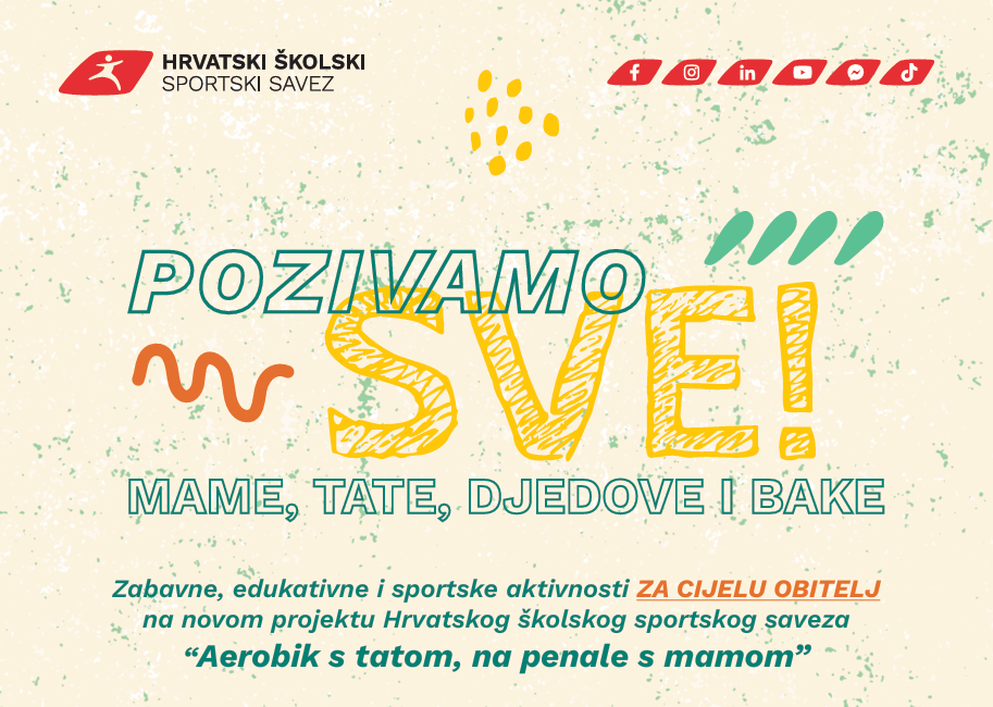Hrvatski školski sportski savez, uz podršku Ministarstva turizma i sporta, provodi brojne sportske i edukativne projekte koji uključuju više od 80.000 djece i mladih. Jedna od novina je i inicijativa “Aerobik s tatom, na penale s mamom”, koja će školskim igralištima širom Hrvatske donijeti radost i zajedništvo. Cilj je stvoriti prostor gdje obitelji mogu uživati u sportskim aktivnostima, dok istovremeno razvijaju interes za sport. Ovaj pristup potiče socijalizaciju i zajedničko druženje, što dodatno doprinosi jačanju obiteljskih veza, a provodit će se i u Virovitičko-podravskoj županiji u OŠ Ivane Brlić-Mažuranić Orahovica.