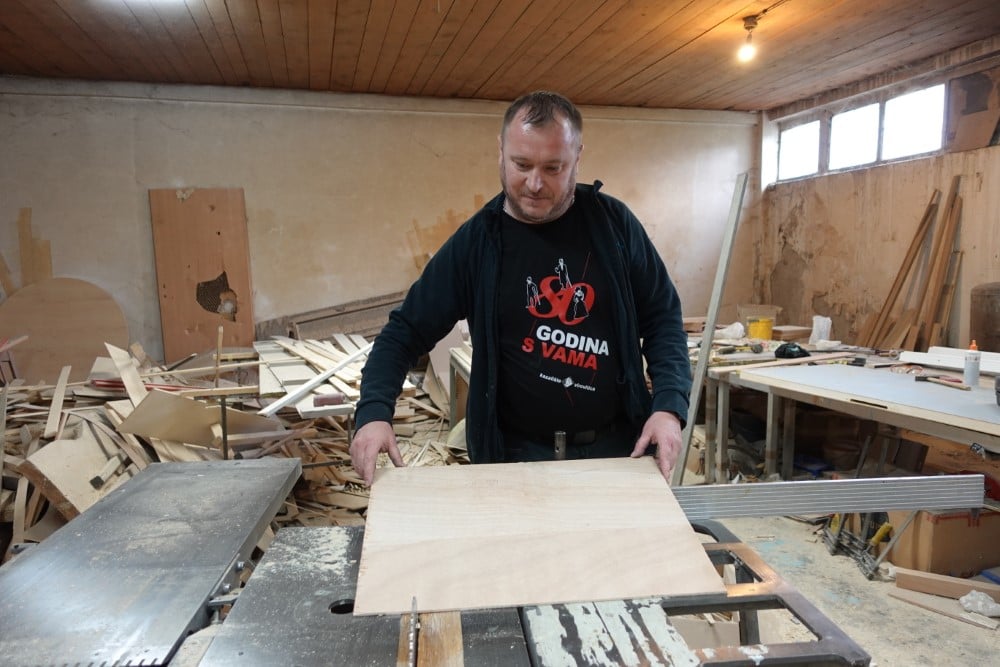 “Riječ je o pomalo specifičnom, ali vrlo zanimljivom opisu posla. Naime, nemam klasično radno vrijeme „od sedam do tri“, već nekada dolazim rano ujutro, prije svih, a nekada radim cijelu noć kako bih završio s farbanjem scenografije na vrijeme. Ukratko, posao stolara u kazalištu izgleda tako da radite prema uputama scenografa. Svaka predstava započinje čitaćim probama, potom dolazi scenograf koji vam daje nacrte, objašnjava najbitnije i polako krećete s izradom scenografije po činovima” – uvodno nam objašnjava Dario Pšihistal, stolar sa 17 godina iskustva u virovitičkom Kazalištu.