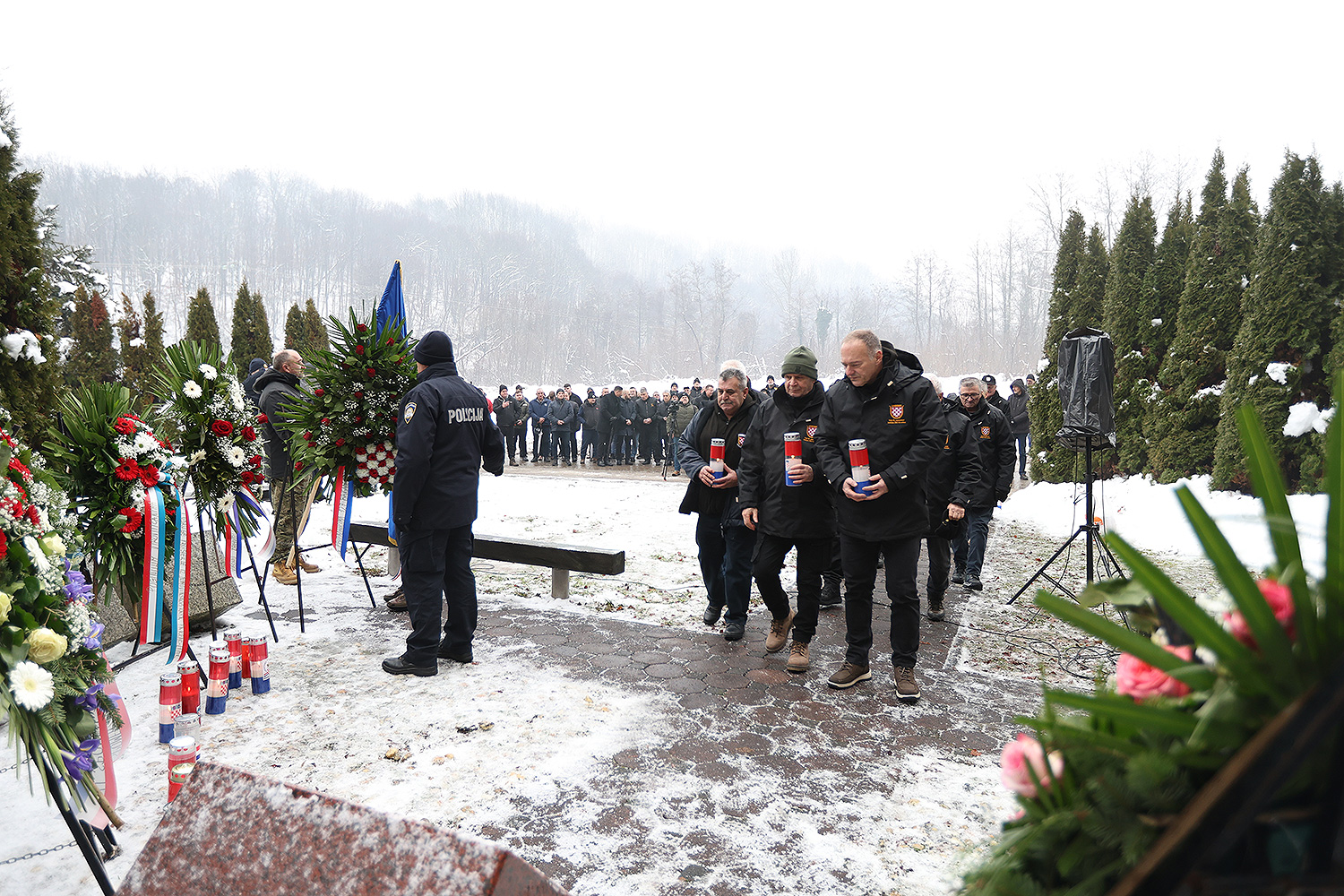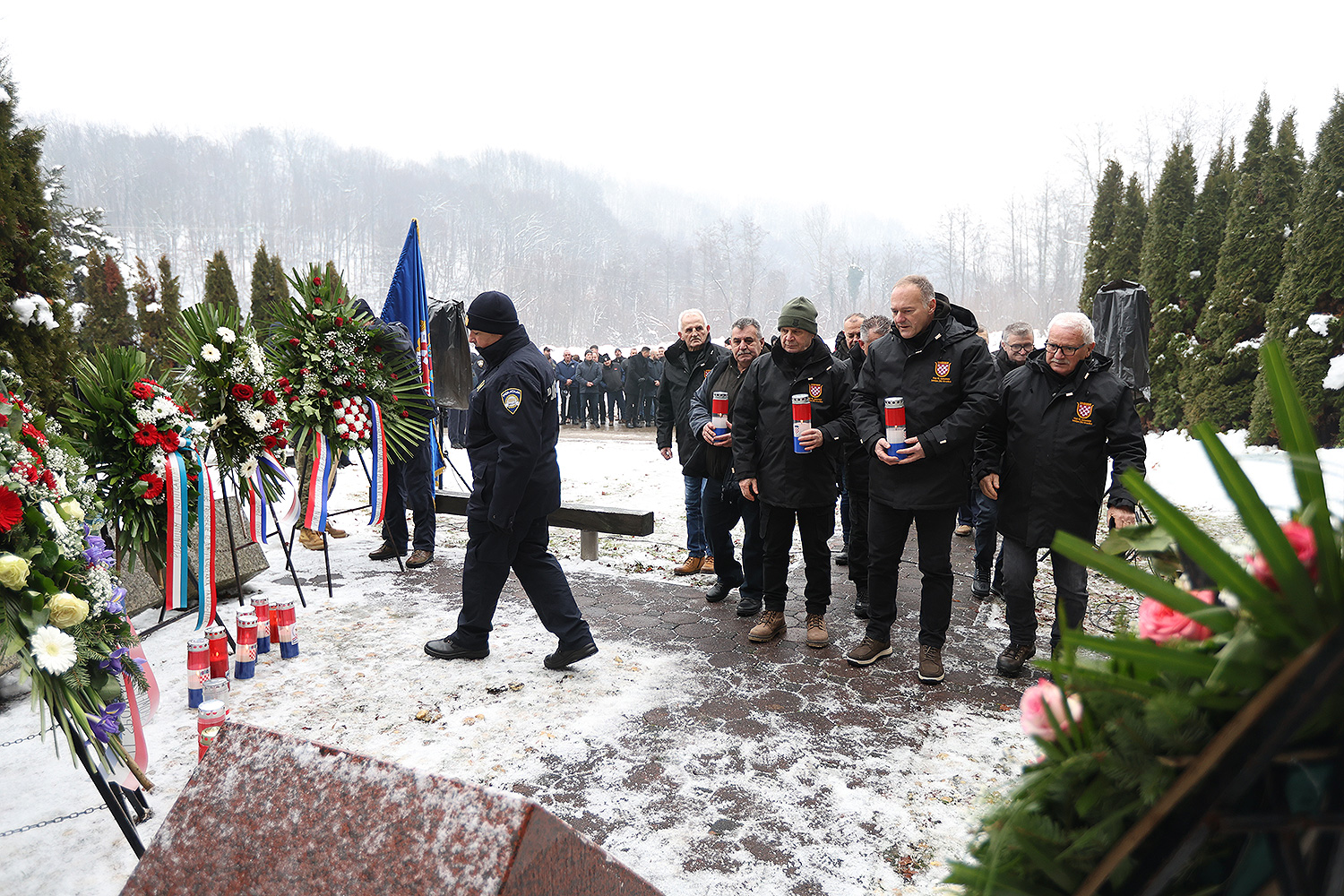Počast dvanaestorici pripadnika virovitičke 127. brigade prvo su odale njihove obitelji i rodbina uz Udrugu udovica poginulih branitelja Domovinskog rata VPŽ. Potom se žrtvi poklonila delegacija Hrvatskog sabora i HVIDRA-e RH, Ministarstva hrvatskih branitelja i Ministarstva obrane RH, predvođena saborskim zastupnikom i predsjednikom HVIDRA-e Josipom Đakićem, glavnim državnim odvjetnikom Ivanom Turudićem i izaslanikom ministra Hrvatskih branitelja Dinkom Tandarom. Vijenac je položila i delegacija Virovitičko-podravske županije predvođena županom Igorom Androvićem.