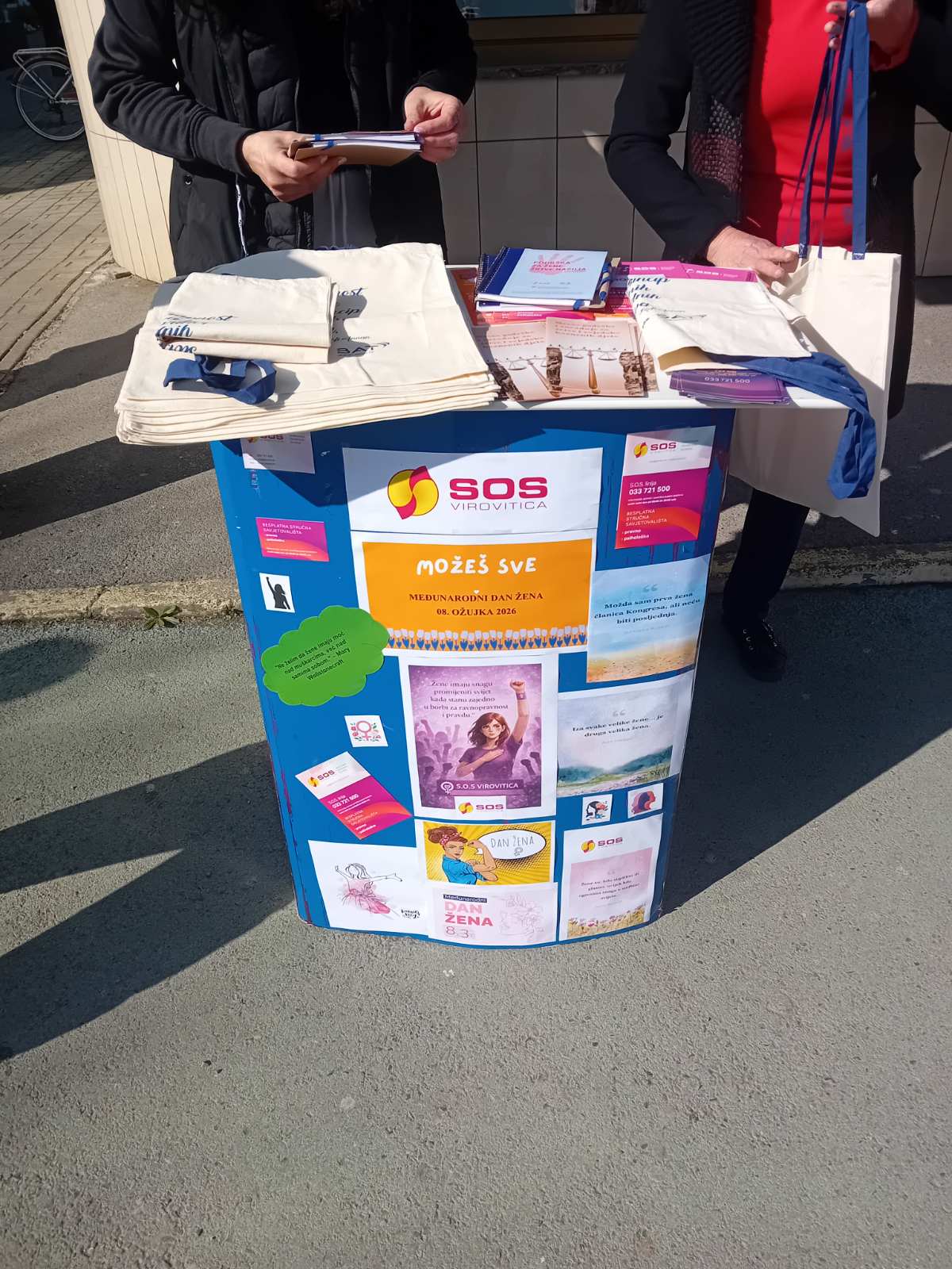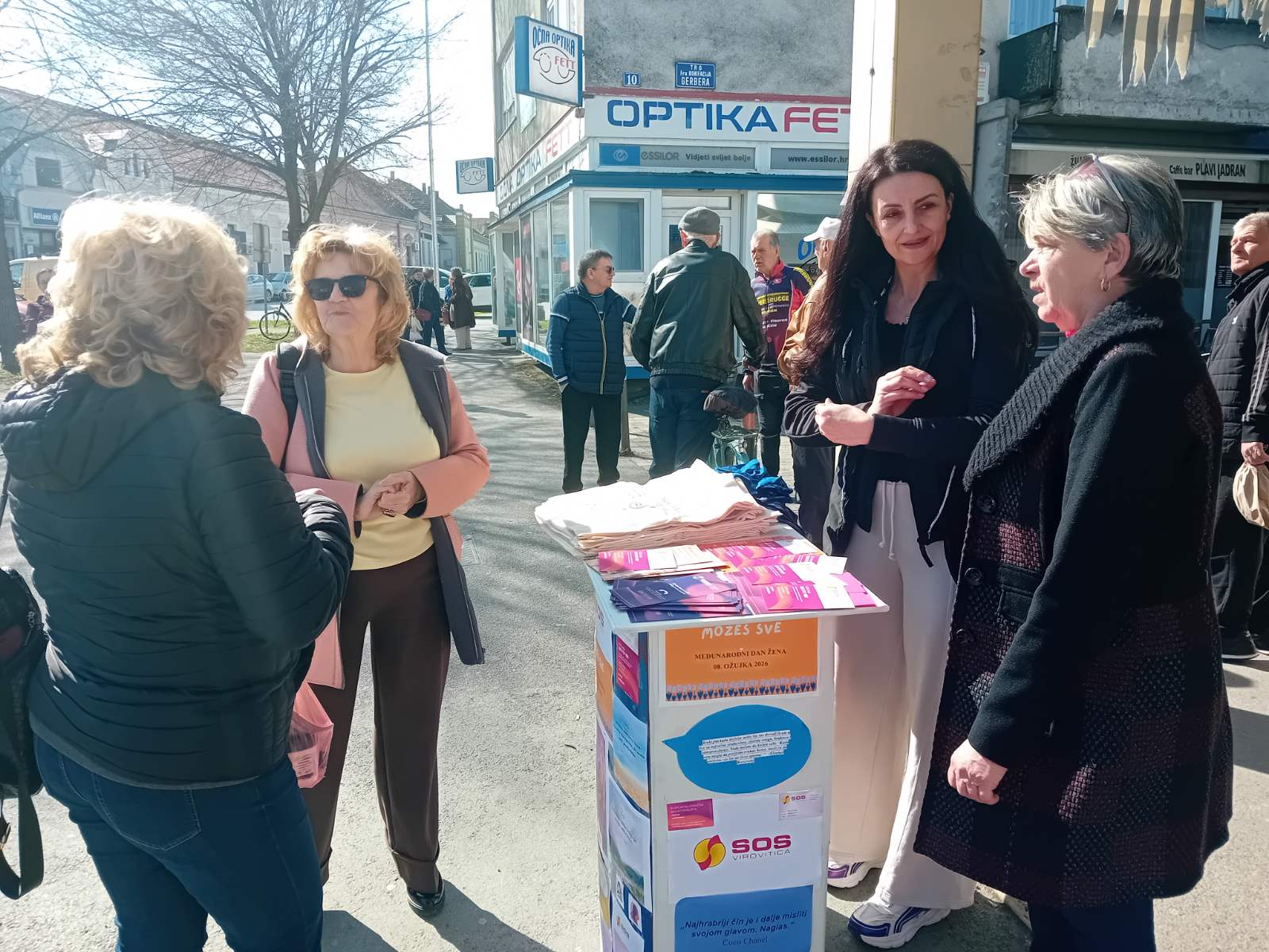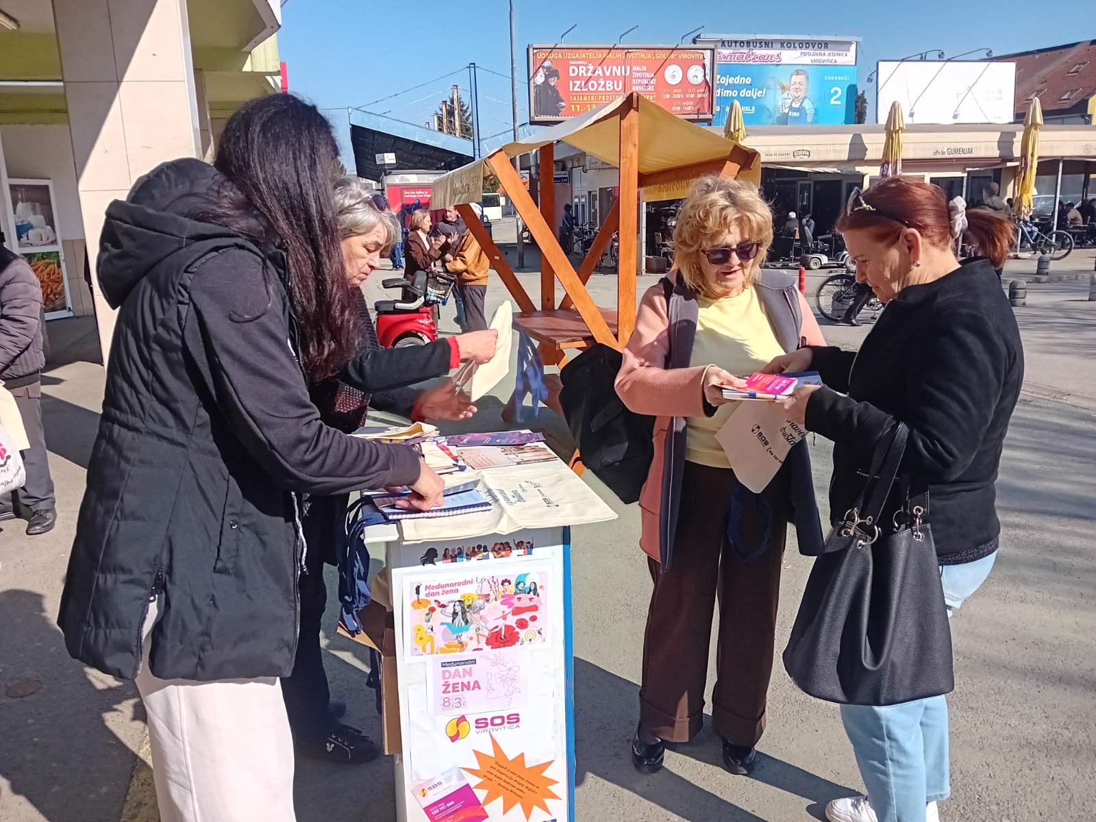 Udruga S.O.S Virovitica organizirala je javnu akciju podjele promotivnih i informativnih materijala povodom Međunarodnog dana žena, 8. ožujka, ispred Gradske tržnice Virovitica u vremenskom razdoblju od 10:30 do 11:30 sati.