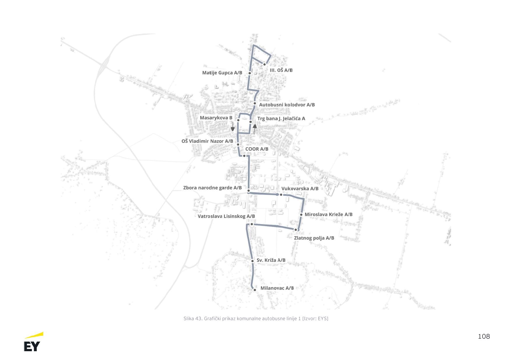 Linija 1 prometovat će svakodnevno od 6:10 do 22:00 sata, a prolazi kroz središte grada i povezuje zapadni i istočni dio Virovitice. Ruta obuhvaća područja poput III. osnovne škole, Ulice Matije Gupca i Masarykove, zatim Trg bana Jelačića, Ulicu Vladimira Nazora i industrijsku zonu, a dalje se nastavlja prema Vukovarskoj ulici i prigradskom naselju Milanovac.