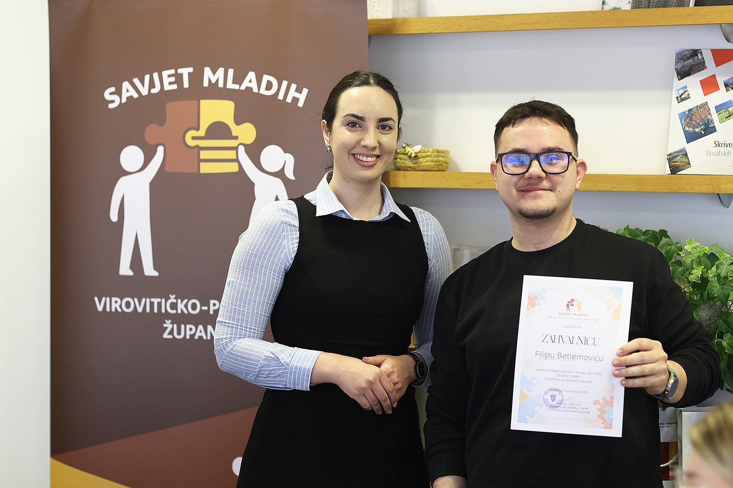 Članovi Savjeta mladih Virovitičko-podravske županije, u Sali za sastanke organizirali su prijem za sudionike kreativnog natječaja. Nagradu za najbolju „zahvalnicu“ osvojila je Lorena Belani, dok je najboljom „pozivnicom“ proglašen rad Filipa Betlemovića. U natječaju su, uz pobjednike, sudjelovali i – Andreja Farkaš, Borna Bula, Martina Tonc, Mateja Ciglar, Patrik Vida i Ana Weiss. Okupljenima se obratila predsjednica Savjeta, Iva Lulić, koja im je zahvalila na uloženom trudu, kreativnosti i angažmanu u izradi zahvalnica i pozivnica, nakon čega su im uručene i prigodne nagrade. Osim toga, članovi Savjeta mladih VPŽ, zahvalili su svim sudionicima na sudjelovanju, te mladima su uputili poziv mladima da se i dalje aktivno uključe u rad Savjeta i život lokalne zajednice. (www.vpz.hr, il, Fotografije: Kristijan Toplak)
