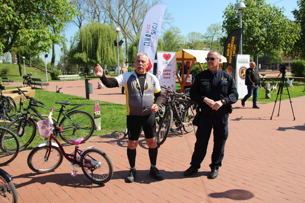 Lijepo i toplo proljetno vrijeme na gradsku šetnicu ispred Gimnazije Petra Preradovića privuklo je dvjestotinjak ljudi svih životnih dobi. Uz prijavu za biciklijadu svi su mogli dati prilog udruzi “Veliko srce malom srcu” te registrirati svoj bicikl kod službenika Policijske postaje Virovitica.